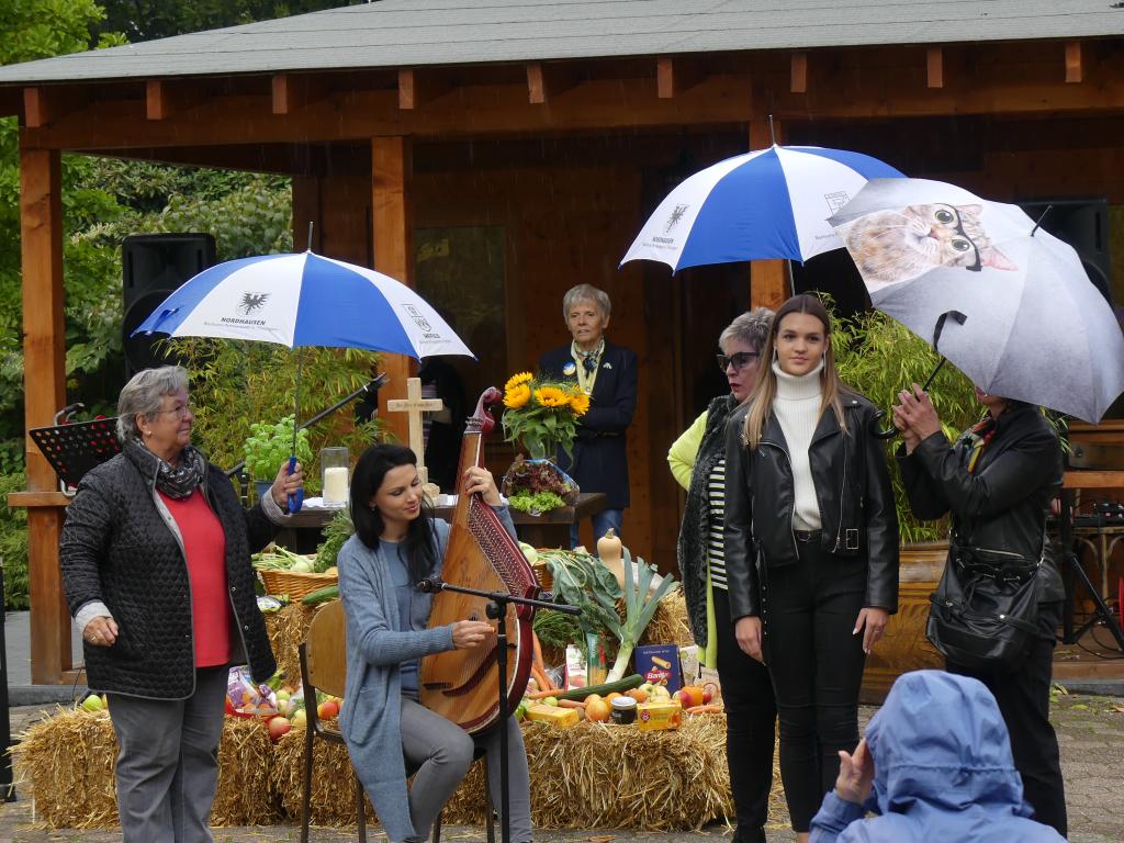 Nach dem Gottesdienst, zu dem viele Familien gekommen waren, gab es einen berührenden musikalischen Beitrag von Svitlana Novak und Liza Radchenko, die auf der Flucht vor dem Krieg nach Bochum gekommen waren. Sie gaben ukrainische Musik auf der Bandura zum Besten.