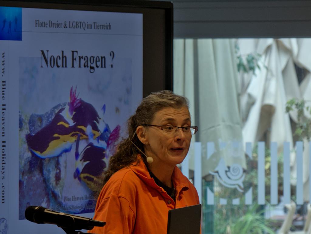 Den Samstag eröffnete die Bürgermeisterin und Vorsitzende des Stadtsportbund Bochum, Gabriela Schäfer, mit einem Grußwort. Danach führten die Referentinnen und Referenten die Besuchenden auf eine spannende Reise durch die Welt des Tauchsports. Den Auftakt machte Constanze Conrad, Diplom-Meeresbiologin, mit einem unterhaltsamen Einblick in das Sexleben der Meeresbewohner und den vielen verschiedenen Fortpflanzungsstrategien im Tierreich.