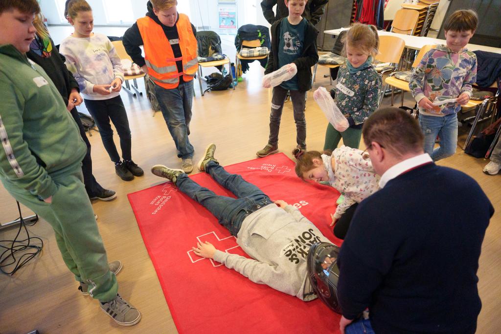 Auf dem Programm standen zum Beispiel wichtige Themen wie das richtige Verhalten bei Unfällen, der Umgang mit Wunden, Brüchen und Verstauchungen sowie der korrekte Ablauf eines Notrufs. Ein besonderes Highlight war das Üben der Herz-Lungen-Wiederbelebung an einer Puppe. Dabei zeigten sich die Kinder und Jugendlichen sehr aufmerksam und engagiert. Egal, ob es um das Anlegen von Verbänden ging oder darum, sich als "Verletzter" zur Verfügung zu stellen – alle waren mit vollem Einsatz dabei und konnten viel Wissenswertes mitnehmen.