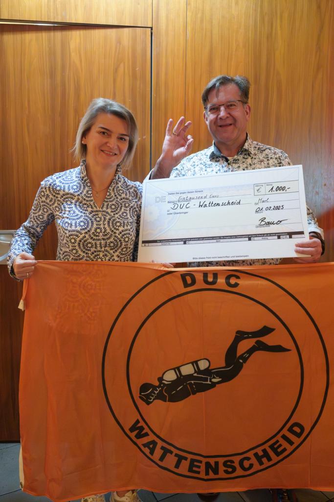 Der DUC Wattenscheid freut sich über eine großzügige Spende in Höhe von 1.000 Euro, die von Oliver und Dorothe Bauer von der AS Bauer GmbH aus Marl bereitgestellt wurde. Beide sind nicht nur Unternehmer seit über 25 Jahren, sondern auch begeisterte Sporttaucher und aktive Mitglieder des Vereins. Mit ihrer Unterstützung möchten sie dazu beitragen, das Vereinsleben weiter zu stärken und wichtige Projekte zu fördern.