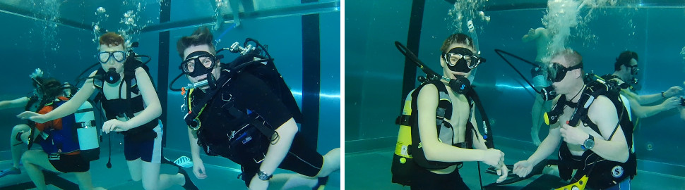 Dinge ausprobierst. Wenn du dich gut dabei fühlst, tauchen wir ab und begeben uns in den 3,60 m tiefen Schwimmerbereich. Nach einer guten Viertel Stunde tauchen wir wieder zum Einstieg zurück, wo du deinen Freunden von deinem Erlebnis berichten kannst.