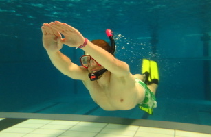 Schwimme wie ein Delfin und erreiche spektakuläre Geschwindigkeiten von weit über 3 m/s. Dafür sorgt beim Finswimming die Monoflosse, die eine ca. 12-15 Mal größere Vortriebsfläche bietet. Finswimming ist eine anspruchsvolle Sportart, da die Monoflosse einen hohen Krafteinsatz erfordert. Sie ist gleichzeitig dynamisch und ästhetisch, setzt dadurch aber auch hohe Ansprüche an Koordination und Flexibilität. Es ist die schnellste Fortbewegungsart des Menschen im Wasser - nur unter Ausnutzung der eigenen Muskelkraft und anderer physiologischer Fähigkeiten, zu denen auch die Apnoe, also das Anhalten des Atems, gehört. Deshalb bereitet dich Finswimming auch hervorragend auf das Tauchen mit und ohne Pressluft vor. In verschiedenen Wettkampfdisziplinen kannst du dich zudem mit anderen Finswimmern messen.